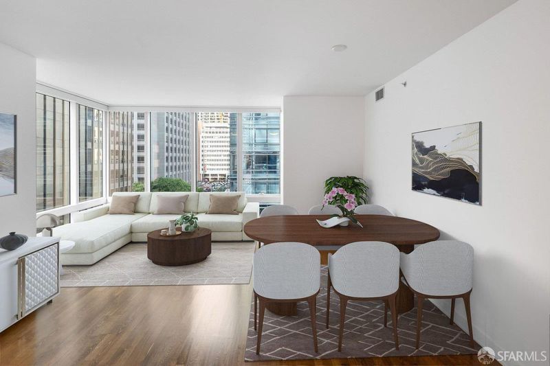 Exceptional value for the most desireable one bedroom plan in the Residences at Millennium Tower, the iconic, luxury high-rise in the heart of San Francisco. This spacious corner one-bedroom, one-bath residence is wrapped in walls of windows, offering beautiful natural light and dynamic city outlooks. The chef's kitchen features a center island, designer cabinetry, quartzite countertops, and premium stainless steel appliances. The oversized bedroom includes a large picture window with window seating, while the generously sized bathroom offers both a soaking tub and a separate shower for a spa-like experience. Additional highlights include an in-unit washer and dryer, refinished hardwood floors, fresh paint, new carpet, and a convenient storage locker located on the same floor. Live in luxury at one of San Francisco's most iconic addresses, complete with top-notch amenities and unbeatable downtown walkability. Amenities include a 20,000 square foot Club Level featuring: Resident dining room & bar, movie theater, wine tasting room with a wine storage locker included. 5,000 sq.ft. fitness center. A 75-foot heated, indoor, saline lap pool with hot tub, steam room, private locker rooms, and a children's playroom with access to childcare. Enjoy all access to MT's famous calendar of events & 5-star luxury services. *Please note that furnished images have been virtually staged.