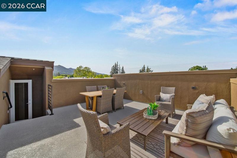 600 Hartz, where classic beauty & modern elegance coalesce, nestled in the heart of downtown Danville. This new boutique building boasts a collection of 36 luxury residences in sixteen different floor plans with 1, 2, or 3 bedrooms, each designed around a lushly landscaped courtyard, offering a tranquil escape for residents. Given its prominent location, the architectural design of 600 Hartz was crafted to complement the historic charm and character of Danville. (visit the website @ 600Hartz.com). Nestled in a prime location, this stunning 2-level townhouse style residence offers a seamless blend of comfort and style. Step inside to discover a beautifully appointed kitchen featuring sleek quartz countertops, rich dark wood cabinetry, and premium stainless-steel appliances—an inviting space for both casual meals and gourmet creations. The open floor plan extends effortlessly to a charming front patio, perfect for morning coffee or evening relaxation. Venture up to the rooftop deck, where breathtaking panoramic views of Las Trampas and Mount Diablo create an unforgettable backdrop for entertaining or unwinding under the stars. Photos are of our model home #107.