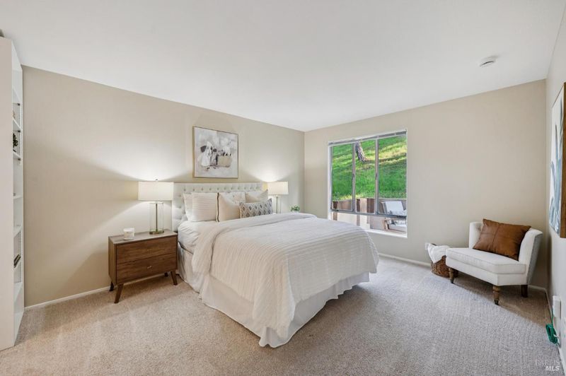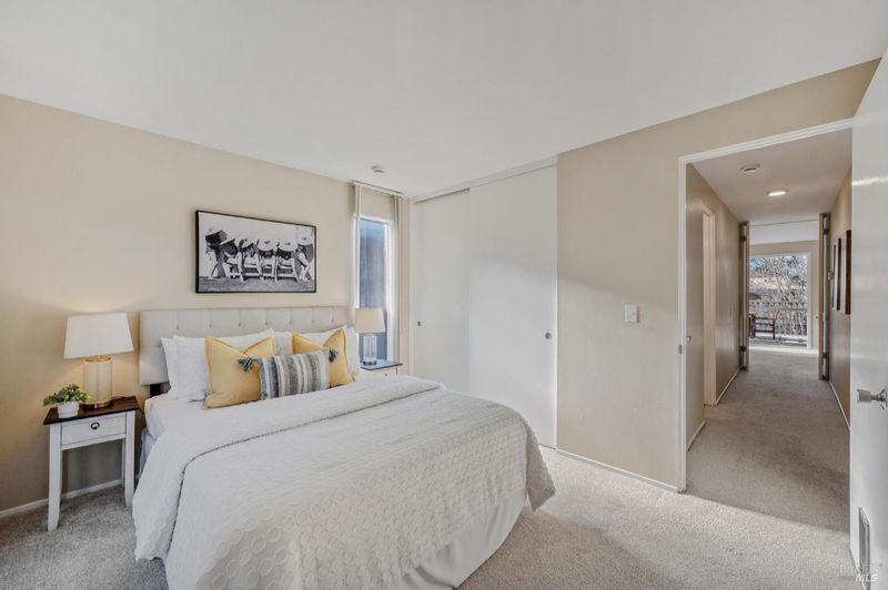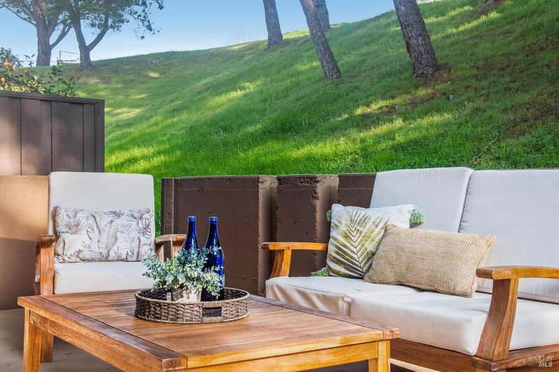 Private, serene, and sun-filled, this beautifully positioned residence enjoys the rare benefit of no shared side walls and exceptional privacy. Located one story above the carport, the unit features covered parking, a private laundry and storage area below, and convenient access via a covered walkway. One of only a few units in the community to offer an oversized front deck, this home invites you to dine, relax, and take in golden sunsets in a peaceful, elevated setting. A second outdoor living space is a generous rear patio off the second bedroom which offers tranquil views of surrounding nature and open space. The open-concept floor plan seamlessly connects the kitchen, dining area, and living room, all overlooking the sun-drenched front deck, creating an ideal layout for both everyday living and entertaining. The spacious primary suite features two closets, a dedicated dressing area, and an en-suite bath. Set on over 20 acres of lushly landscaped grounds, the community offers true resort-style amenities including a clubhouse, three swimming pools, two tennis courts, EV charging stations, and scenic walking and biking paths. Perfectly located near award-winning Miller Creek schools, Scotty's Market, popular restaurants, and with direct access to Terra Linda-Sleepy Hollow Open Space, this home offers the ultimate blend of comfort, convenience, and resort-style living.