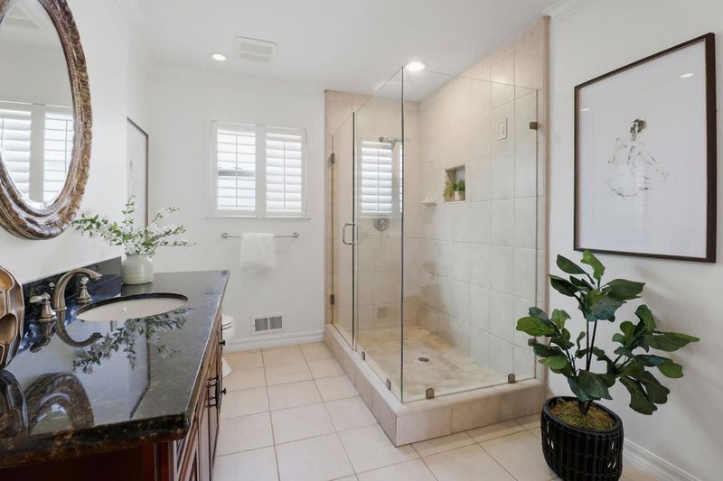 - Double Sinks, Granite, Primary - Stall Shower(s), Shower and Tub, Solid Surface, Stone, Updated Bath
