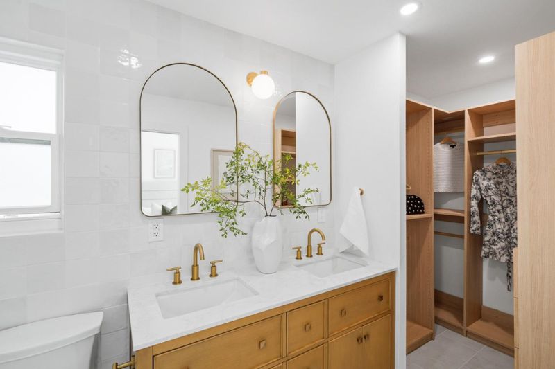 - Double Sinks, Half on Ground Floor, Primary - Stall Shower(s), Shower over Tub - 1, Tile, Updated Bath