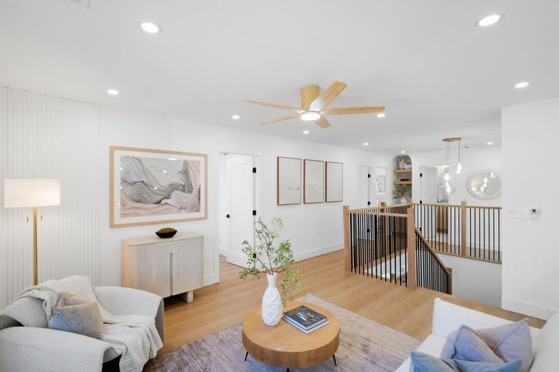 Welcome to the CROWNED JEWEL of South San Jose fully renovated turnkey home where modern architecture meets thoughtful craftsmanship. Soaring vaulted ceilings, expansive living spaces, and designer finishes throughout create a light-filled atmosphere perfect for both everyday living and elevated entertaining. The formal living and dining areas are anchored by a striking fireplace and flow seamlessly into the chefs kitchen featuring Taj Mahal countertops, custom cabinetry, and stainless steel appliances, open to the family room for effortless gatherings. Upstairs, a versatile loft overlooks the main living area, adding architectural interest and natural light. Spacious bedrooms and upgraded baths offer comfort and privacy, while the primary suite provides a serene retreat with vaulted ceilings and a private balcony. The modern exterior showcases stone accents and Tesla solar for energy efficiency. Enjoy an oversized, fully hardscaped backyard with stamped colored concrete, an exceptional value-add. Ideally located near parks, shopping, top schools like Challenger & Valley Christian, and major commuter routes offering easy access to all major tech hubs into the downtown San Jose & the Peninsula. This home delivers warmth, style, and lasting value in one exceptional offering.