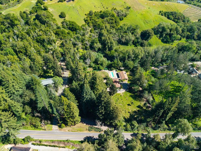 Set on approximately 2.7 acres along one of Napa Valley's most storied rural corridors, this is a rare opportunity to steward a place where California history, architectural pedigree, and land legacy converge. For more than six decades, the property was owned and carefully stewarded by the Brusstar family, whose name is woven into the fabric of Napa Valley's agricultural heritage. The site was home to Brusstar's Christmas Tree Farm widely regarded as Napa's last remaining cut-your-own farm a living remnant of the valley's quieter, pre-boom era defined by family stewardship, continuity of ownership, and deep respect for the land. Warren Brusstar, a former Major League Baseball player and member of the 1980 World Series-winning Philadelphia Phillies, later inducted into the Napa Valley College Athletic Hall of Fame in 2011, adds a distinctly human dimension to a provenance already rich in meaning. Equally significant is the property's documented architectural lineage. In the late 1950s, the landscape was designed by Thomas D. Church widely regarded as the father of modern California landscape architecture and the defining voice of California's indoor-outdoor living ethos. The Brusstar project is formally recorded in the Thomas D. Church Collection at UC Berkeley's Environmental Design Archives, with original drawings and manuscripts preserved. Verified Church landscapes in private hands are extraordinarily rare, and in Napa Valley, virtually nonexistent. The original main residence has been removed. What remains a detached studio with kitchen and bath, a garage, and a built-in pool set among redwoods and bordered by a seasonal creek offers a compelling and practical foundation. The studio functions beautifully as a full-time residence while a future main home is thoughtfully designed and built, subject to county approvals, allowing the next owner to live within the land before committing it to architecture. Zoned Agricultural Watershed and designated a Rural Homestead, this is not a development play. It is an invitation to those who understand that the rarest properties are not measured in square footage, but in story, soul, and the weight of what came before.