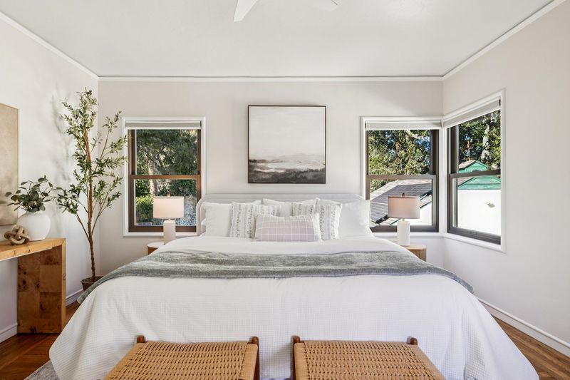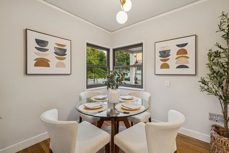 Creekside living hits different at 976 Collier Dr in coveted Estudillo Estates. This premier 3BD/2BA stunner blends architectural charm with modern must-haves—think new plumbing, new Andersen dual paned windows, and upgraded HVAC adorned with mosaic parquet hardwood floors and arched doorways. With 1,833 sqft of split-level style onThrough a warm foyer w/ mosaic parquet hardwood floors and graceful arched doorways leading to a spacious living room a charming fireplace, and a formal dining area ideal daily liivng and entertaining. The functional kitchen features vintage custom cabinetry, stainless steel appliances, dual-drawer dishwashers, and cozy breakfast nook. Few steps up lead to 2 comfortable bedrooms and grand tiled bathroom with separate tub and shower with hidden charm. Primary bedroom offers dual closets, a laundry chute for ease, and a Juliet balcony. Downstairs, flex space with a bedroom and a full bath—perfect for a home office, guest suite, or media room. A backyard retreat with a great deck overlooks San Leandro Creek. An attached one-car garage, exterior storage room, and shed add excellent storage. Minutes to Hwy 580, Sabino Café, Lake Chabot, downtown, and San Leandro BART—an exceptional home in one of San Leandro’s most cherished neighborhood to call home.