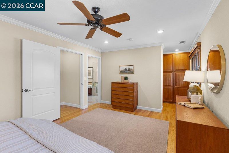515 La Mancha is a GREAT, BIG home on a substantially flat .33 acre lot on a cul de sac in Diablo West. The measured living space is a whopping 3132 SF. Within the floor plan are 5 bedrooms, 3.5 baths, formal dining & living rooms, and a spacious family room. There are en suite bedrooms both downstairs AND upstairs - perfect for multi-gen, a pampered nanny, or long-staying house guests. The kitchen (2019 remodel) features sprawling Taj Mahal quartzite counters, a suite of GE Monogram appliances, and custom cabinetry with clever niches and pullouts. The home has been thoughtfully expanded and meticulously maintained. The rear yard is private and adorned with gorgeous mature perennials, shrubs, and trees. The new owners will appreciate the finished 3 car garage, central vac system, extra storage provided by the Tuff Shed on the side yard, and a significant offset on the PG&E bill from the large solar system. Diablo West is one of Danville’s destination neighborhoods. There is a strong sense of community built through year round HOA sponsored events. It is close to Town and amazing schools, and is a short hop to I680.