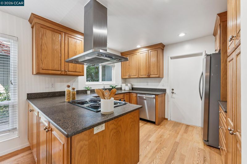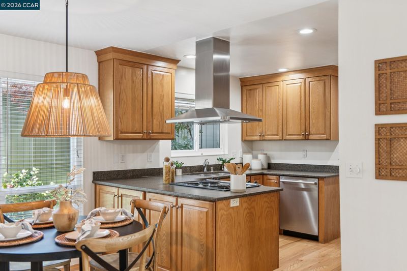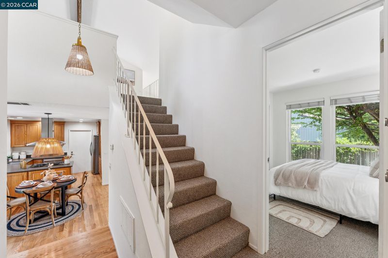 Stunning detached townhome features fabulous layout with two living spaces and inviting primary suite. The living spaces here are divine. Family room shows off with vaulted wood ceilings, woodburning fireplace & wall of windows facing the backyard. Kitchen is made for comfortable living & entertaining: with abundant cabinet space, stainless appliances and is perfectly open to the dining area. Impeccable warm hardwood floors have just been refinished, entire interior was freshly painted & new light fixtures were just installed. A primary suite offers a walk-in closet + two separate sink areas for zen morning vibes. Large windows in every room ensure sunlight filters throughout. The upstairs is a dream w/ a loft space ideal for a sleepover room, library, playroom or gym area. One solo bedroom + full bath upstairs gives your teenager, house guest, or work-from-home partner a space all to themselves. The generous yard is low maintenance and beautiful with paving stones. Stellar location by trails/shops/Hwy 680!