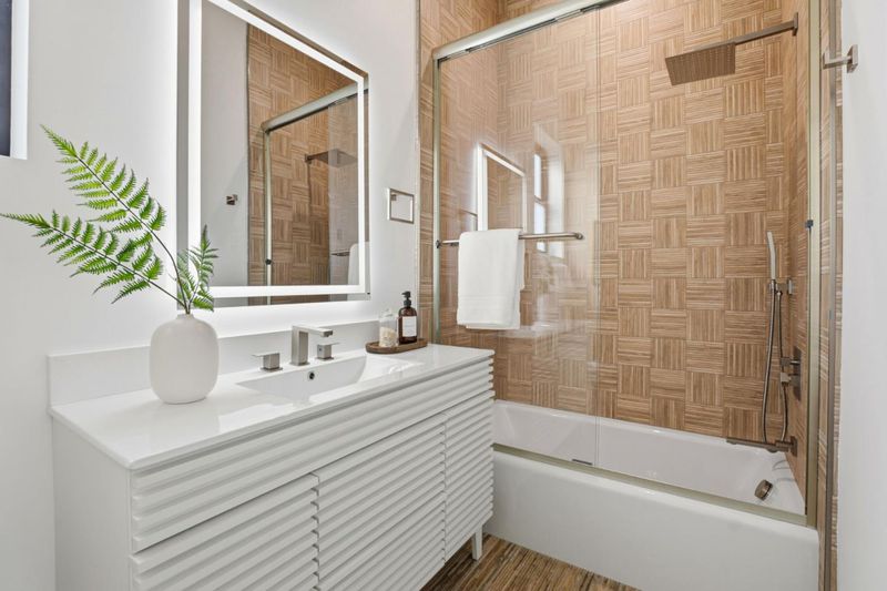 - Double Sinks, Full on Ground Floor, Granite, Half on Ground Floor, Primary - Stall Shower(s), Sauna, Showers over Tubs - 2+, Stall Shower - 2+, Tile, Tub