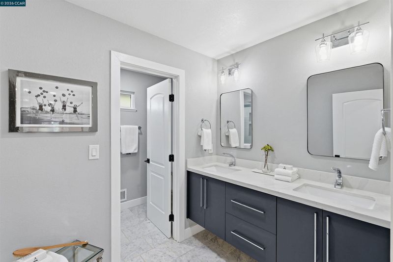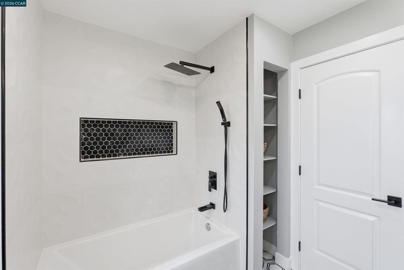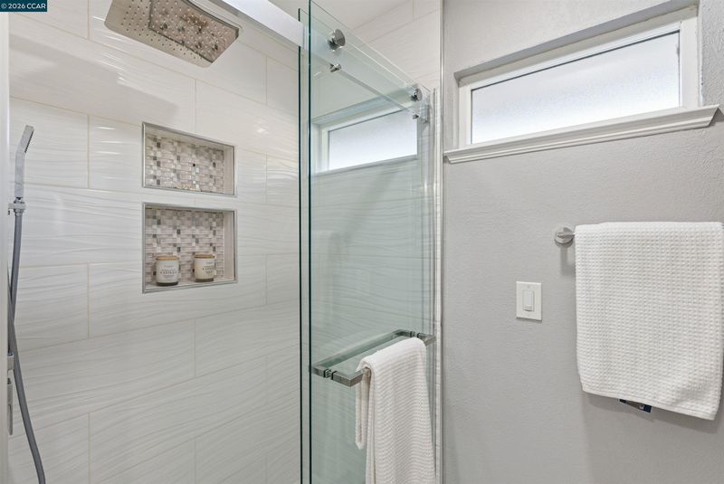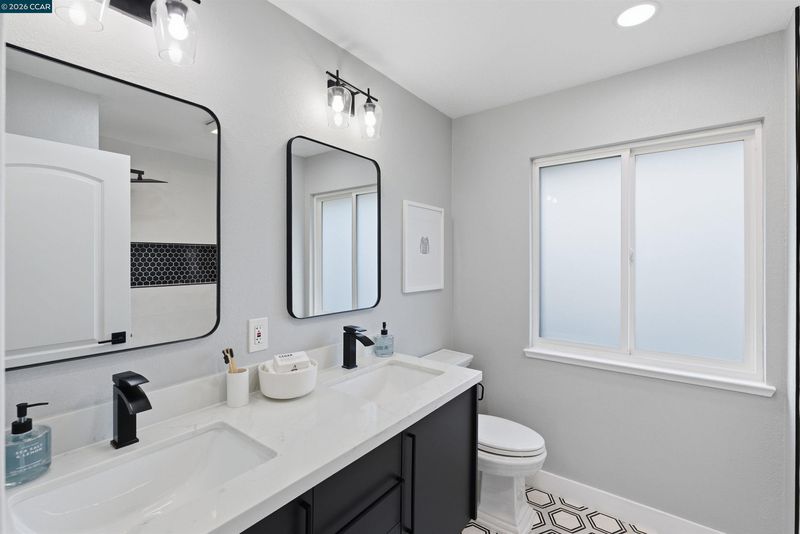 Shower Over Tub, Tile, Updated Baths, Double Vanity, Window