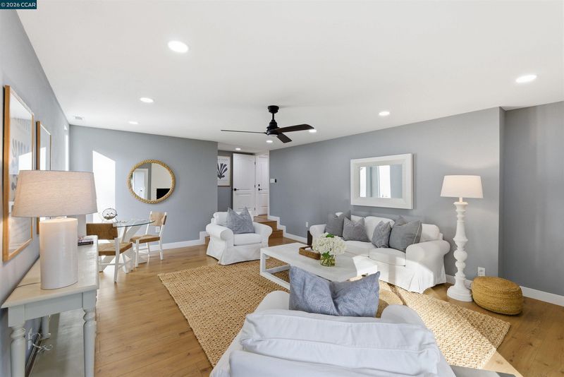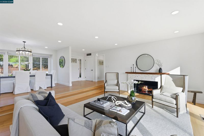 Experience elevated living in this beautifully remodeled home in one of Moraga’s most desirable neighborhoods. The sun-filled living room features walls of glass, a striking stone and wood mantel fireplace, and seamless indoor-outdoor connection. The thoughtfully designed kitchen showcases white and gray cabinetry, quartz countertops, and sleek stainless-steel appliances and fixtures. Wide-plank engineered wood flooring, sophisticated interior paint, recessed lighting, and contemporary finishes enhance the home’s modern appeal. Expansive views extend from nearly every room, creating a bright and serene atmosphere. One level down, a spacious and versatile room provides flexibility for a family room, home office, gym, or guest space, complete with a private entrance to the backyard. Multiple outdoor spaces invite both entertaining and quiet relaxation, while the semi-private backyard offers a peaceful retreat. Ideally located close to top-rated Moraga schools, parks, trails, shopping, and dining.