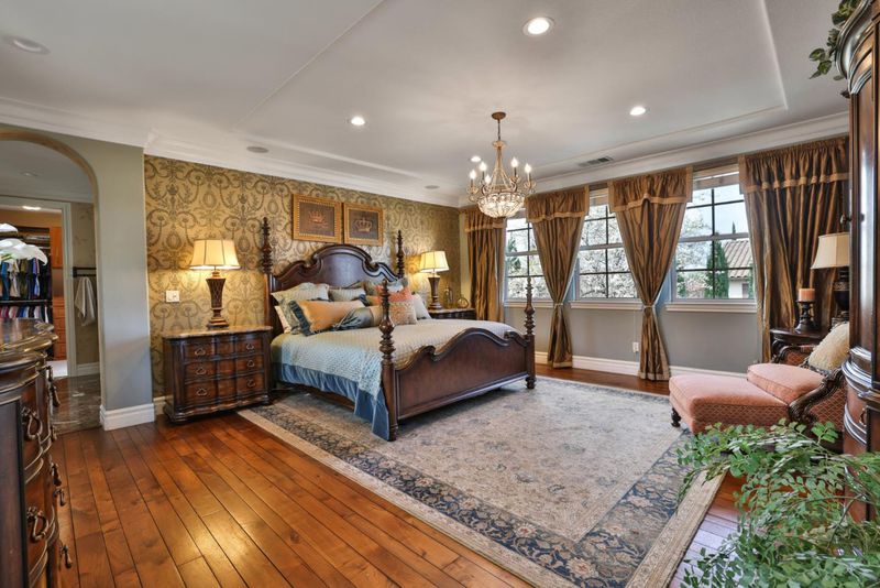 Nestled in the prestigious Vista Del Cerro community, this custom Robson Homes estate offers refined living in the heart of Almaden Valley. Built in 2006, this 4,368 sq.ft. residence boasts 6 bedrooms and 4.5 bathrooms, blending timeless craftsmanship with modern comfort. The home features a gourmet kitchen with custom cabinetry, granite slab countertops, a Sub-Zero refrigerator, butlers pantry with dual wine refrigerators, and rich European hardwood floors throughout the main living areas. Highlights include a dedicated office with French doors, an entertainer's interior courtyard with a fountain and fireplace, and a luxurious primary suite with an expansive walk-in closet and a spa-inspired bath. The resort-style backyard showcases a custom pool and spa, water features, outdoor kitchen, and low-maintenance landscapingideal for both entertaining and relaxation. Additional amenities include owned solar with Tesla backup batteries, EV charging, dual-zone HVAC, custom garage storage, and quality construction throughout. Conveniently located near top-rated Leland High School and Williams Elementary, with easy access to parks, trails, golf courses, shopping, dining, and Highways 101, 85, and 87, this exceptional home offers privacy, luxury, and convenience.