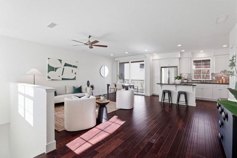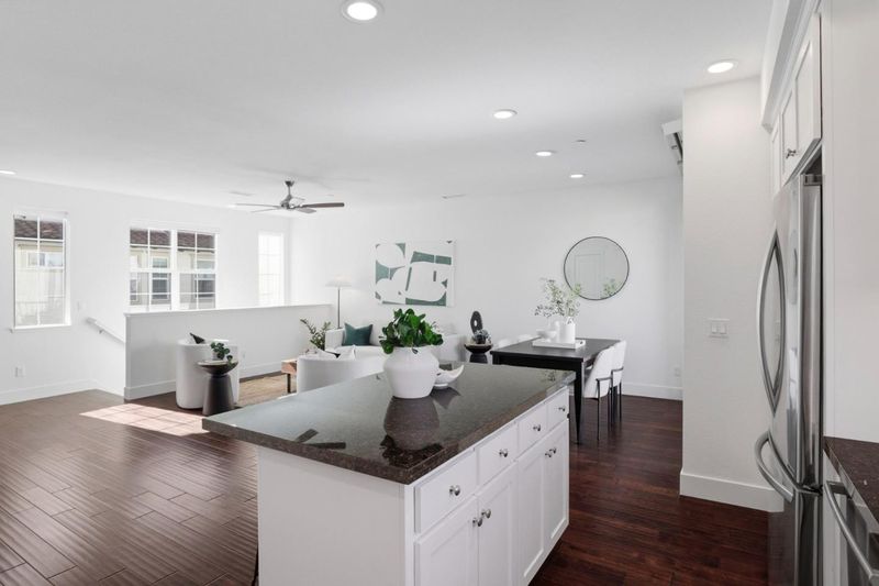 Modern, light-filled 3BR townhome in Downtown Sunnyvale with open kitchen, granite counters, island, SS appliances, upstairs laundry, patio, and garage with EV charger. Steps to Caltrain, dining, shopping, and entertainment.