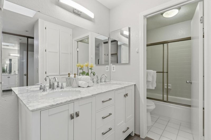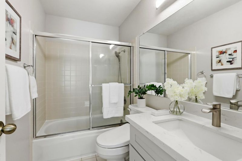Don't miss this contemporary home featuring serene park views, a permitted kitchen remodel, top-rated Homestead High School, and HOA dues that include water and garbage. The separate family room works well as an office or study, and two spacious bedrooms boasting en-suite bathrooms with bathtubs. The modern kitchen offers stainless steel appliances, including a Bosch dishwasher, Broan range hood and Whirlpool electric range with double ovens. Enjoy year-round comfort with central heating and air conditioning, complemented by stylish laminate flooring and recessed lighting throughout. The attached garage adds convenience with an interior laundry area. Residents enjoy access to the community pool and spa just steps away. Perfectly situated near downtown Sunnyvale and Mountain View, with easy access to shopping, dining, and major commute routes.
