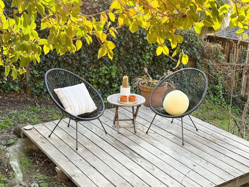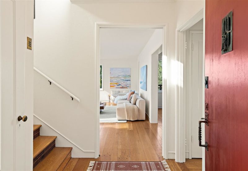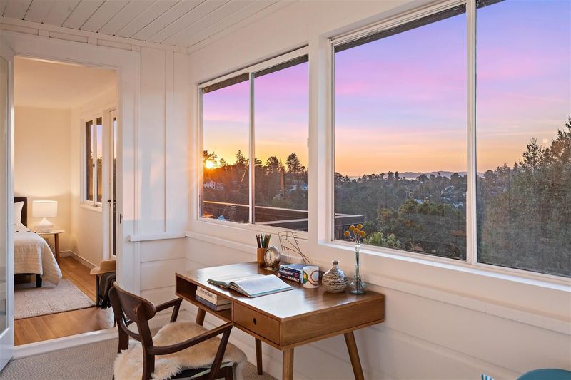 This soulful and charming family home awaits just up a short path from Montclair Village: framed by a towering pine in front and generously terraced outdoor spaces in back, it is fantastic for both living and entertaining. The floor plan is perfect: 3 bedrooms and 1.5 baths, plus a sun-drenched extra space on the second level, ideal as an office or cozy hangout. Upon entering from the generous front patio, you’re immediately drawn to the spacious living room showcasing vistas of blue skies, camellias in bloom, and a partial view of the Golden Gate Bridge in the distance. There’s a formal dining room with French doors to a deck overlooking the dreamy backyard. Also downstairs are a thoughtfully updated kitchen, a cute ½ bath with new decorative floor tiles, and an attached 2-car garage. Upstairs are 2 bedrooms (the master has 2 closets), which both have access to the sunroom, and a full bath sporting a stylish remodel with designer tiles and sparkling light fixtures. On the lower level is the 3rd bedroom with a brick fireplace, which would make a comfortable guest room or private home office with direct access to the spacious deck with charming cafe lights and the peaceful backyard. Close to Montclair Element., library, shops and restaurants.Short drive to Rockridge, BART to SF!