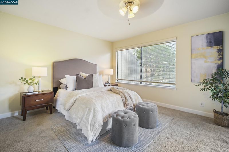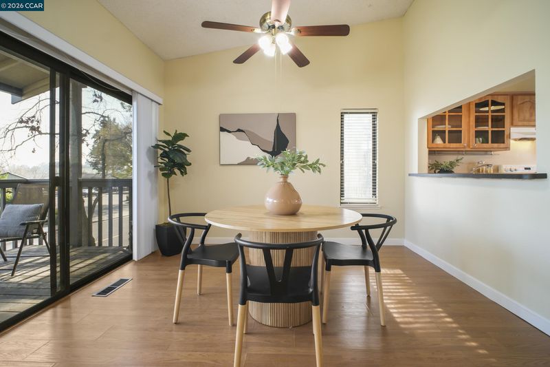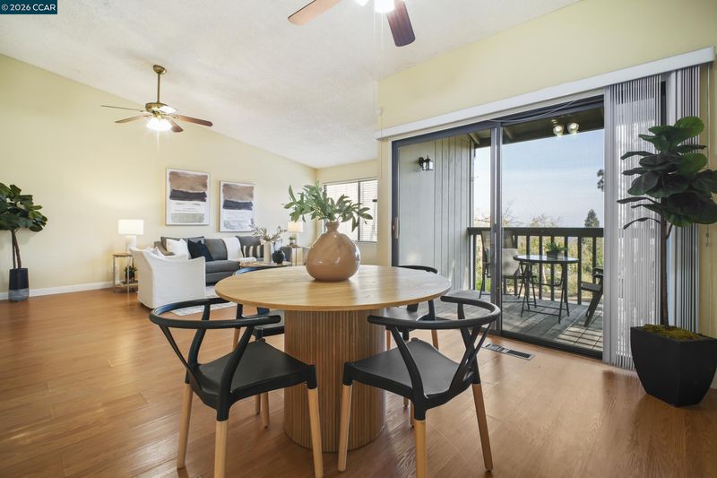 Welcome to this bright and inviting Vine Hill end-unit townhouse offering scenic views, flexible living spaces, and resort-style community amenities. The spacious family room flows seamlessly to the dining area and features vaulted ceilings, a cozy stone fireplace, and large windows that capture beautiful views, creating an open and welcoming atmosphere. Sliding doors in the dining area open to a private deck to enjoy a morning coffee. A convenient half-bath off the family room is perfect for guests. The kitchen offers abundant cabinetry and an eat-in bar, perfect for casual meals and everyday entertaining. Step through the sliding door to the private patio which is ideal for enjoying indoor-outdoor living and grilling with friends. Downstairs find indoor laundry, 3 spacious bedrooms and 2 full bathrooms, including a primary suite with a walk-in shower. In the hall bath enjoy a jetted tub to soak away the day. Convert one of the bedrooms to a home office and still have room for guests. Two covered carport parking spaces are conveniently located steps from the entry. Nestled in the desirable Vine Hill community on the Pleasant Hill/Martinez boarder, enjoy access to commute routes, schools, shopping, hiking, parks, and downtown Martinez plus a community pool and tennis courts.