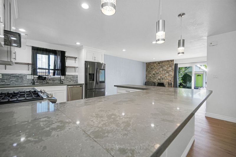 NEW REDUCED LIST PRICE. Step into your own tropical retreat, where an inground pool with a cascading rock waterfall awaits, surrounded by lush, easy-care landscaping and winding paths that lead to charming patios in both the front and back yards. Host unforgettable gatherings outdoors, then move inside to discover three generous bedrooms and two stylishly updated bathrooms with elegant tile floors and modern vanities. The living area features fresh laminate flooring, while plush carpets in the bedrooms invite you to relax. Gather around the family room’s striking stone fireplace, or slide open the door to reveal a stunning backyard oasis that blurs the line between indoor comfort and outdoor beauty. The gourmet kitchen offers abundant counter space, ample cabinetry, and a spacious walk-in pantry for all your culinary adventures.