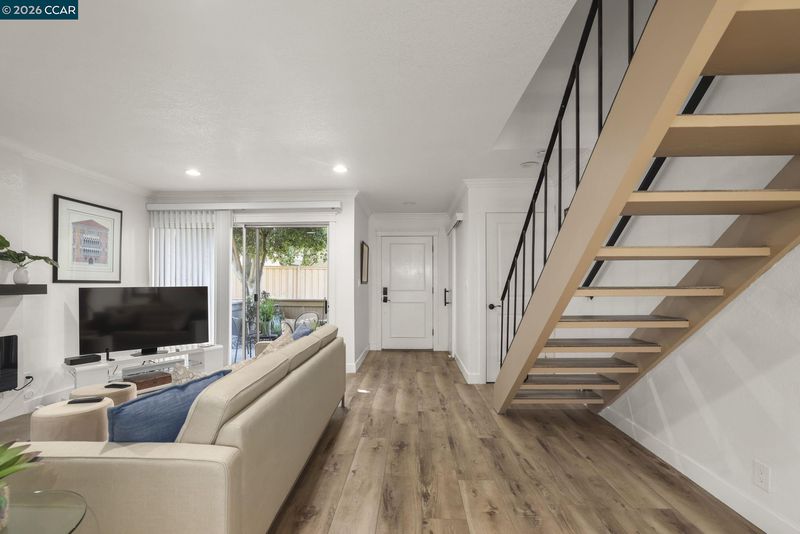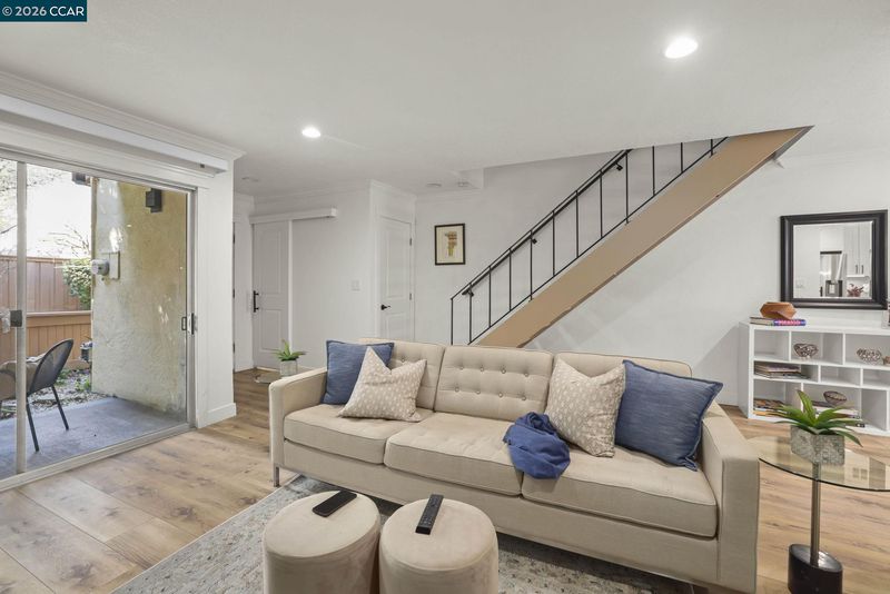One-of-a-kind townhome located in the highly sought-after "Sunset Park" community, offering an exceptional opportunity as a primary residence or investment. Tucked at the back of the complex for added privacy, this beautifully updated end-unit home features two spacious bedrooms, two private patios, and an upstairs balcony off the primary bedroom, creating wonderful indoor-outdoor living spaces. Stylish laminate flooring runs throughout the home, complemented by crown molding, recessed lighting, two new patio sliders, and a custom programmable color-changing fireplace with a stone surround that adds warmth and ambiance year-round. The updated kitchen showcases quartz countertops and a pantry, while the full-size indoor laundry is conveniently tucked behind a charming barn door. Residents enjoy resort-style amenities including a pool, clubhouse, tennis courts, and scenic walking paths, all set within beautifully maintained grounds. Ideally located next to the Iron Horse Trail and just minutes from Heather Farms Park, Diablo Hills Golf Course, downtown Walnut Creek, shopping, dining, freeways, BART, and John Muir Hospital. This is a rare opportunity to own a truly turn-key home in an unbeatable location—don’t miss it.