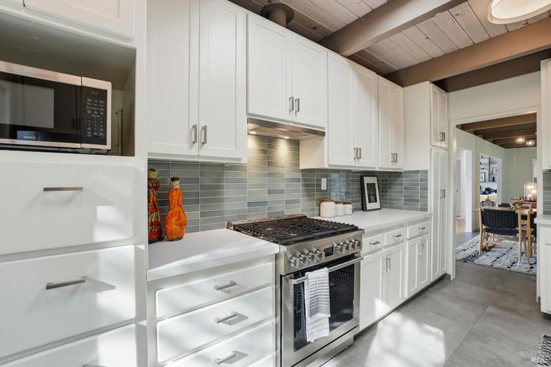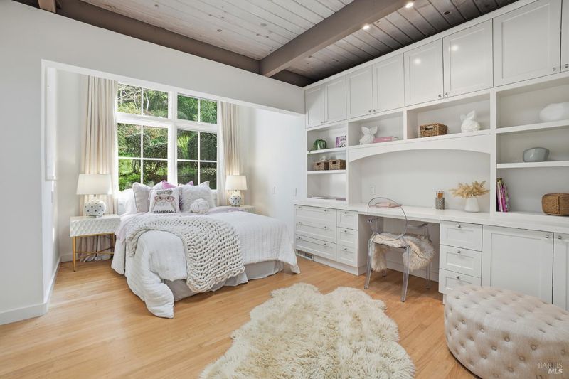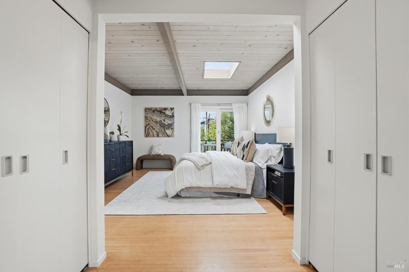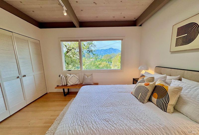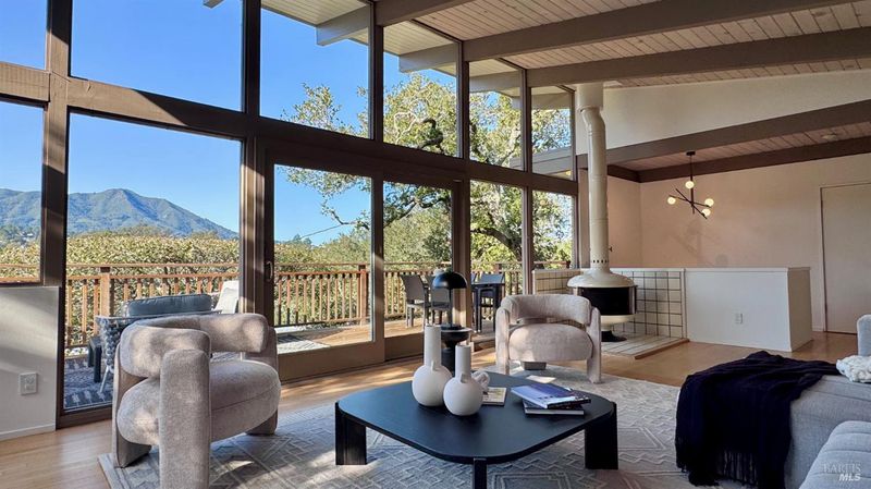 Chic midcentury modern home in highly desirable Homestead Valley with stunning Mount Tam views. Set on a large lot adjacent to open space, this 4 bed, 3 bath home offers privacy, light and spacious rooms. Soaring ceilings and floor-to-ceiling windows fill the living room with sun and showcase expansive views. The main level features living, dining, updated stainless kitchen, 3 bedrooms and 2 baths, including the primary suite with an updated ensuite and private deck. There is a walk-out patio and bar off the dining room. The large redwood deck off the living room provides views and simple indoor-outdoor living. The lower level offers a comfortable family room, a bedroom, bath, and laundry. Outside access from the lower level offers flexible living. Discover a magical woodland garden with meandering paths, mature trees and plants, flagstone patios and direct access to Homestead Valley Land Trust trails. No neighbors behind you and the lush natural setting make you feel like you are living on vacation! There is also covered parking, the wonderful Homestead Valley community and easy commute or downtown access. What Mill Valley is all about--just minutes to the city in a peaceful, private setting with nature at your back door.