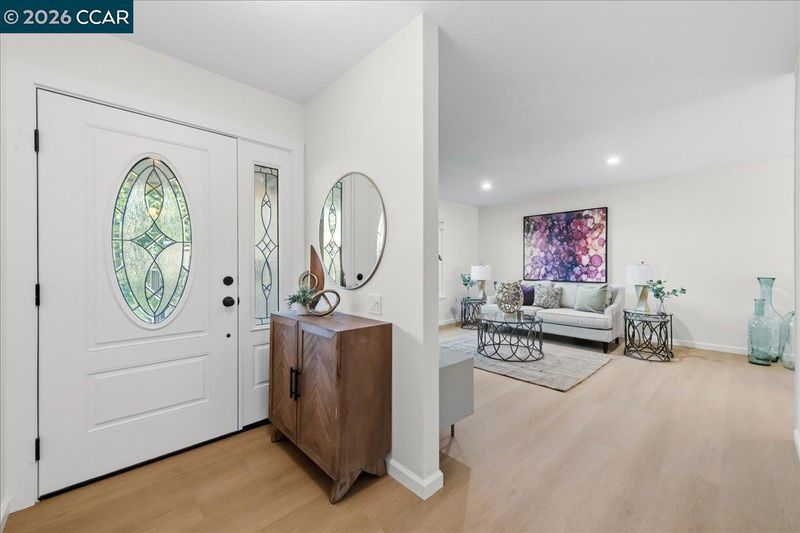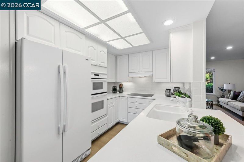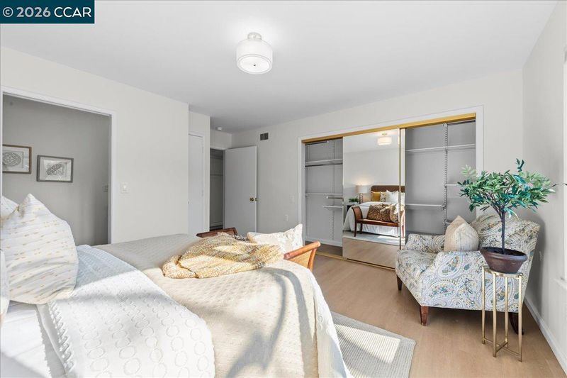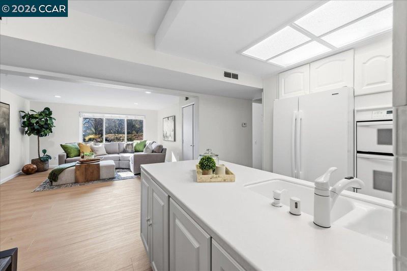 Beautiful single row, single story, level-in Expanded San Franciscan, with two spacious living rooms, dining area and white kitchen; brand new luxury vinyl plank flooring and dual pane windows throughout; updated kitchen with skylight, glass cooktop, microwave and dishwasher; stacked washer/dryer and stall shower plus extra 1/2 bath in primary suite. New custom paint, refreshed front patio, and ideal location near Hillside Clubhouse and Sportsman's Park, where swimming, lawn bowling, table tennis, picnic areas with BBQ, and bocce courts beckon! Start your Rossmoor retirement living today!