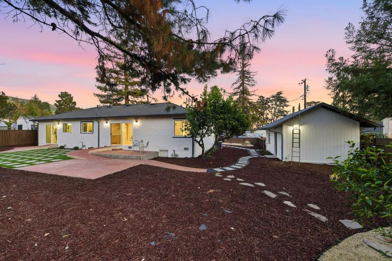 Nestled in the desirable Alum Rock foothills, this beautifully renovated 1,486 sq. ft. home offers a perfect blend of modern luxury and peaceful living on a quiet dead-end street. From the cozy front porch, step into an inviting living room flooded with abundant natural light from large windows and skylights that highlight the elegant luxury vinyl flooring and smooth-textured walls throughout. The stunning gourmet kitchen boasts brand-new cabinetry, quartz countertops, high-end appliances, and a dedicated wine fridge, complemented by a separate dining room and a dedicated laundry room with a wash sink. The thoughtful layout provides a private master suite with a large bay window and an elegant en-suite bath, alongside two additional spacious bedrooms and a modern hallway bathroom. Outside, the expansive 10,000+ sq. ft. lot includes professional landscaping, a detached garage, and a versatile bonus cottage ideal for a home office or studio. With significant potential for an ADU and a prime location near premier dining and shopping, this property represents a rare and versatile opportunity for any homeowner.