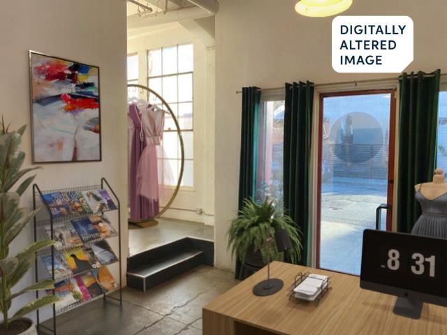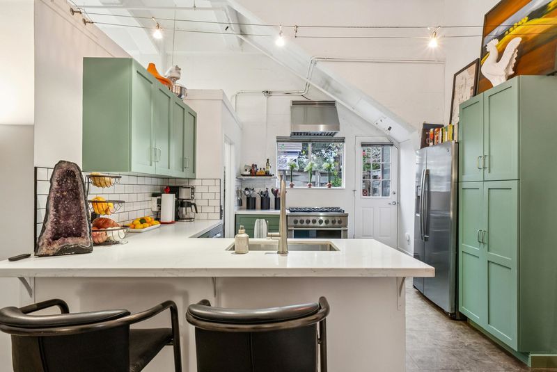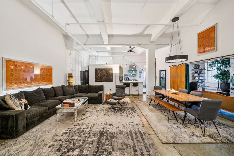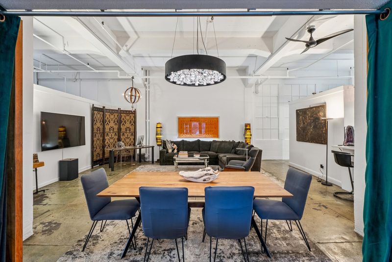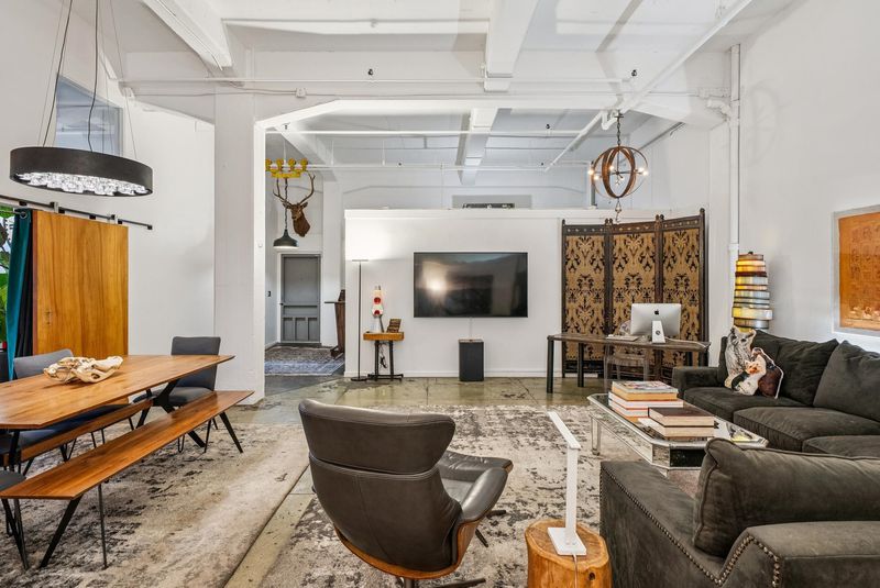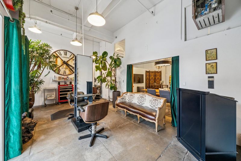 Unforgettable Industrial-Chic Live-Work Loft with Storefront in Historic Oakland Warehouse. Rare, true live-work opportunity offering authentic warehouse character and exceptional flexibility. Currently operating as a high-end salon with a stylish residence, this one-level space features real storefront frontage with roll-up door, dramatic ceiling heights, concrete floors, and bold architectural details throughout. The adaptable floor plan allows for a 3BR/2BA residence, a 2BR home plus storefront or studio, or a separate 1BR/1BA work or guest space—ideal for retail, art or design studio, photo/video production, café concept, or creative business. Behind the storefront, enjoy a remodeled kitchen, expansive open living area, curated designer finishes, and seamless indoor-outdoor flow to a private garden patio. Additional highlights include level-in entry, updated baths, two deeded parking spaces adjacent to the unit, and separate storage. A truly unique, non-cookie-cutter property in one of Oakland’s most dynamic creative neighborhoods. (Some images photoshopped to show potential usages)