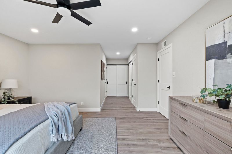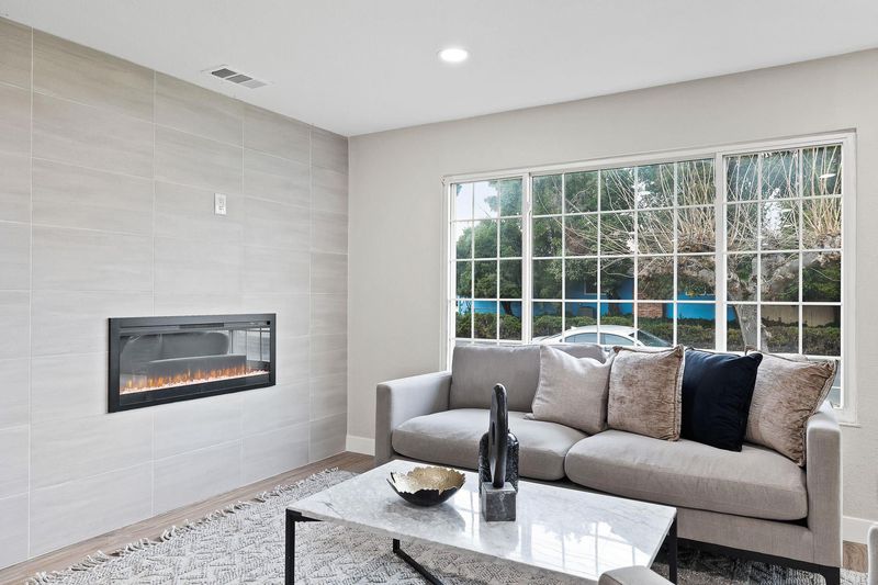 Stunningly remodeled 4-bedroom, 2-bath single-story home on a corner lot in a peaceful neighborhood. This open-concept layout features a designer kitchen with new shaker cabinetry, quartz countertops, and stainless steel appliances. Upgrades include LVP flooring throughout, LED lighting, dual-pane windows, a modern fireplace, updated bathrooms, and ceiling fans in all bedrooms. Freshly landscaped front and back yards add the perfect finishing touch. A must-see!