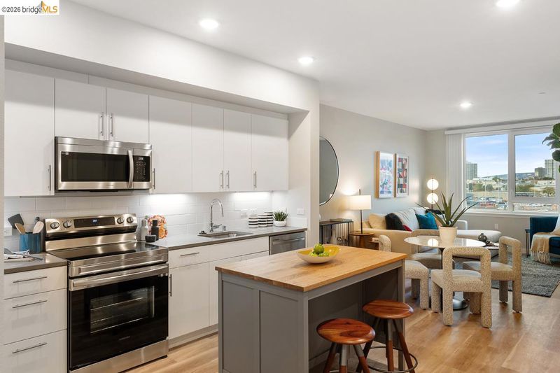 Now Selling at Caspian Residences at Brooklyn Basin - Discover modern waterside living in this thoughtfully designed 1-bedroom, 1-bathroom condo, spanning approximately 736 sq ft. Located in one of Oakland’s most exciting new communities, this home offers a rare chance to own in a vibrant, amenity-rich setting. The open layout features sleek finishes, a well-equipped kitchen with Samsung stainless steel appliances, quartz countertops, and modern cabinetry. High-efficiency dual-pane windows frame the bright living area, while the bathroom includes quartz counters and Grohe fixtures. Includes in-unit washer and dryer. Caspian residents enjoy a fitness center, a dedicated co-working space, landscaped courtyards, a game room, and rooftop lounges with panoramic views. Situated on Oakland’s revitalized waterfront at Brooklyn Basin, the community provides direct access to parks, dining, and recreation, with Jack London Square, BART, and ferry service to San Francisco just minutes away. Includes one parking space. All images are representative of the development and may be of a similar unit.