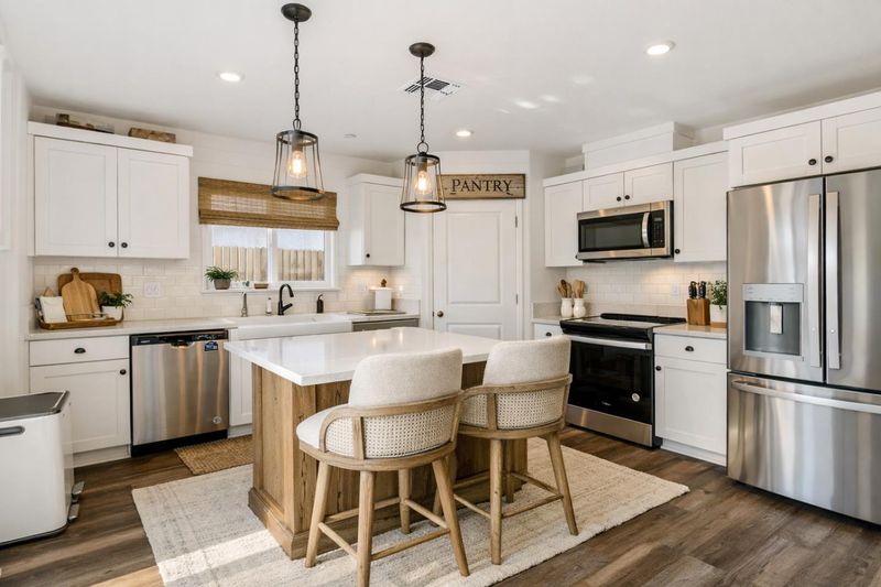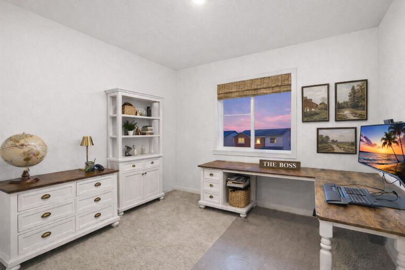Welcome to 1809 Del Mar Drive, featuring an assumable loan under 5% and a thoughtfully designed home offering comfort, privacy, and modern upgrades. All bedrooms are located upstairs along with the laundry, creating a practical layout. Carpeted flooring enhances the upper level, while wood floors add warmth downstairs. The kitchen features white cabinetry, a stainless steel sink, induction cooktop, and a large walk-in pantry. A versatile upstairs loft provides flexible use as an office, media room, or play area. The primary suite offers a walk-in closet and spacious shower. Dual-pane windows keep the home quiet. The private backyard patio allows space for entertaining or a hot tub, with no neighbors behind or directly in front and hill views. Smart home features, AC, owned water softener, Tesla charger, and a quiet, family-friendly neighborhood complete this home.