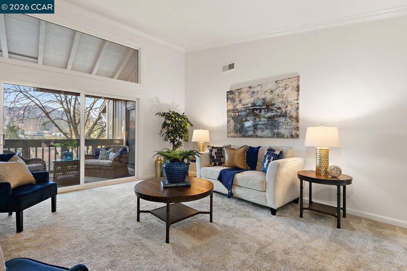 Beautiful updated upper-level Sierra condo. Bright and spacious. Vaulted ceilings. New interior paint. Large two bedrooms with good size closets. Large balcony with pleasant views. Newer dual pane windows. Newer heater & A/C. Newer carpet. Crown molding throughout. Windows & patio shutters. Recessed lighting. Double sink vanity in master bath. Three rooms access to large balcony. One car garage & secure storage. Newer side door into garage (next to steps). Level short walk to Creekside clubhouse, Event Center, golf course, pickleball courts, restaurant. This condo is located in the gated Rossmoor active adult community 55+. This beautiful home is ready for you!