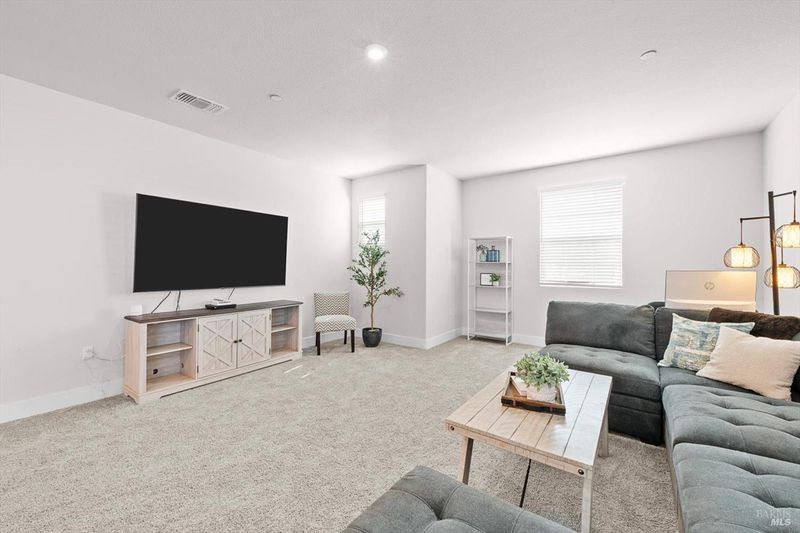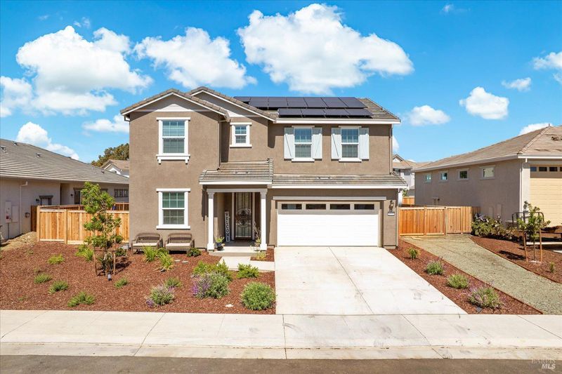 Gorgeous Better Than New Two-Story Home Built In 2024 With Owned Solar, Gorgeous Landscaping, RV AND Boat Parking! This Spacious Home Features 4 Bedrooms + Loft, 3 Full Bathrooms, With 1 Full Bedroom And Bathroom Downstairs, A Gourmet Kitchen With Quartz Countertops, White Cabinetry, Stainless Steel Appliances Including Built-In 5 Burner Gas Cooktop And Hood Over Range, Large Walk-In Pantry And Huge Island With Sink And Breakfast Bar. The Primary Bedroom Boasts An Extensive Walk-Through Closet And Primary Bathroom With Dual Sink Vanity, Glass Enclosed Shower And Soaking Tub. Other Property Highlights Include Recessed Lighting, Window Treatments, Luxury Vinyl Flooring, Plush Carpet, Neutral Paint, Upstairs Laundry Room And Owned Solar. Meticulously Maintained Landscaping, California Room, Tranquil Waterfall, Lawn Areas, Paver Patio And Walkways And Separate RV/Boat Parking. This Light And Bright Home Is Sure To Delight!
