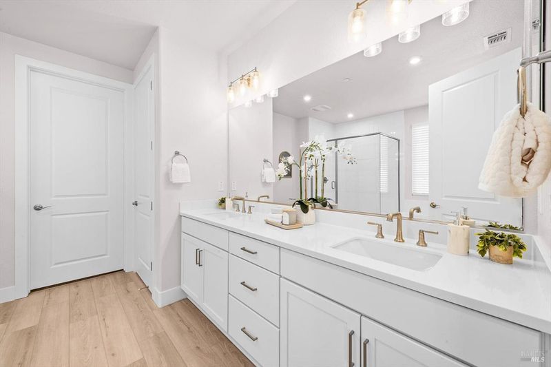 - Double Sinks, Shower Stall(s), Tub, Walk-In Closet, Window