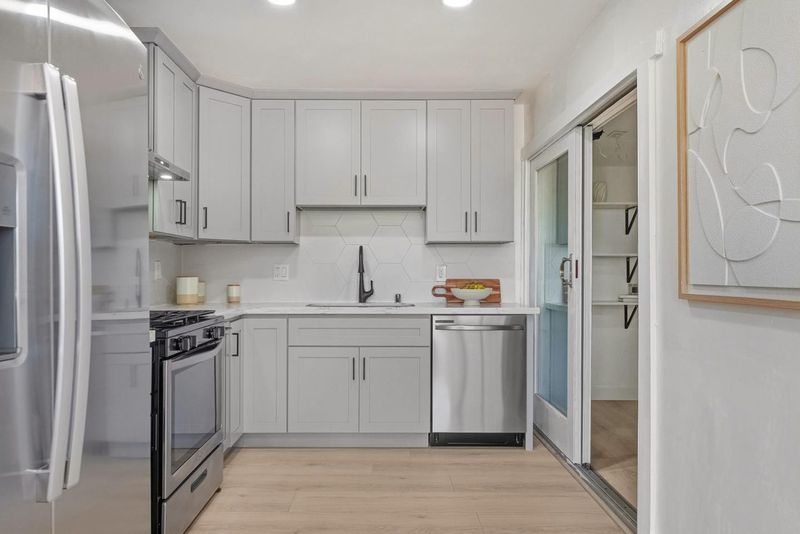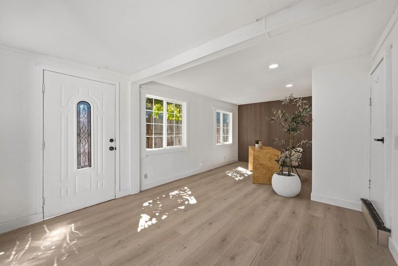 Nestled in the heart of Sunnyvale, this beautifully updated 4-bedroom, 2-bath modern home seamlessly blends designer finishes with Silicon Valley convenience. Offering 1,753 sq ft of thoughtfully designed open-concept living space, the home showcases recessed lighting, and an inviting chefs kitchen featuring a quartz island, custom cabinetry, and a walk-in pantry . The luxurious primary suite includes a spa-inspired bathroom with a freestanding soaking tub, separate shower, and dual vanity. Major system upgrades provide peace of mind, including a 200-AMP electrical panel, new HVAC system, new roof, new water heater, and dual-pane windows. Step outside to a private, low-maintenance yard filled with over 10 varieties of mature fruit trees, grape, fig, orange, plum, pomegranate, avocado, peach, lemon, loquat, and more, creating your own backyard orchard. Ideally situated in a quiet setting just moments from local shopping and dining, this home is a commuters dream with easy access to Highways 101, 237, and Lawrence Expressway. Enjoy proximity to major tech campuses such as Google, Apple, and Amazon, as well as vibrant downtown Sunnyvale and Murphy Avenue. Move-in ready and perfectly located, this home offers the very best of Sunnyvale living.